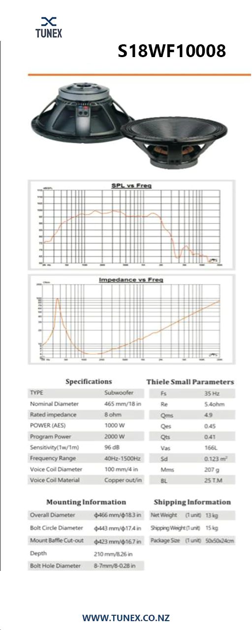S18WF10008 18” Speaker Driver 1000 Watts Rms – 8 Ohms –