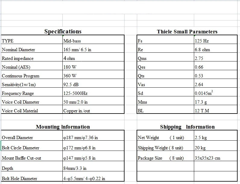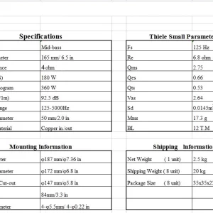 6.5inch Mid Bass Driver – 4Ohm 180W Rms