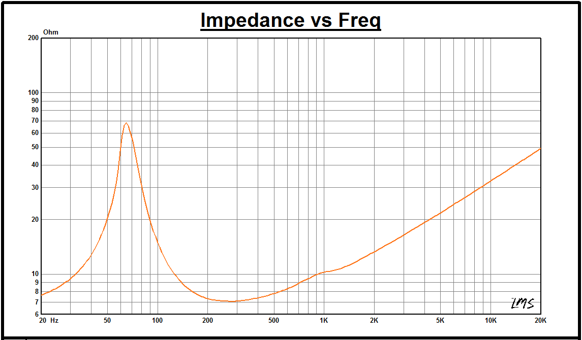 | Rated impedance | 8 ohm | Qms | 5.03 | ||